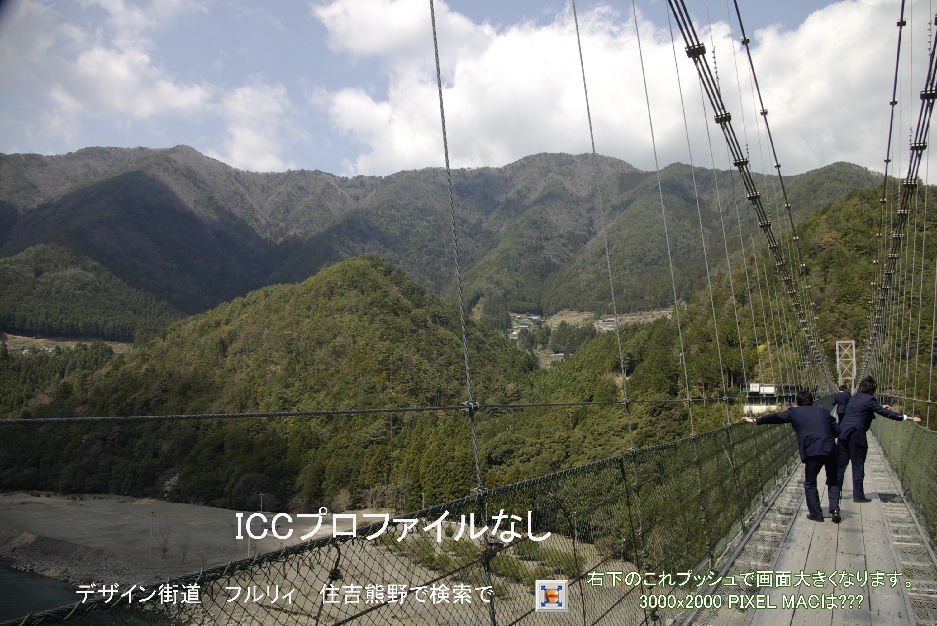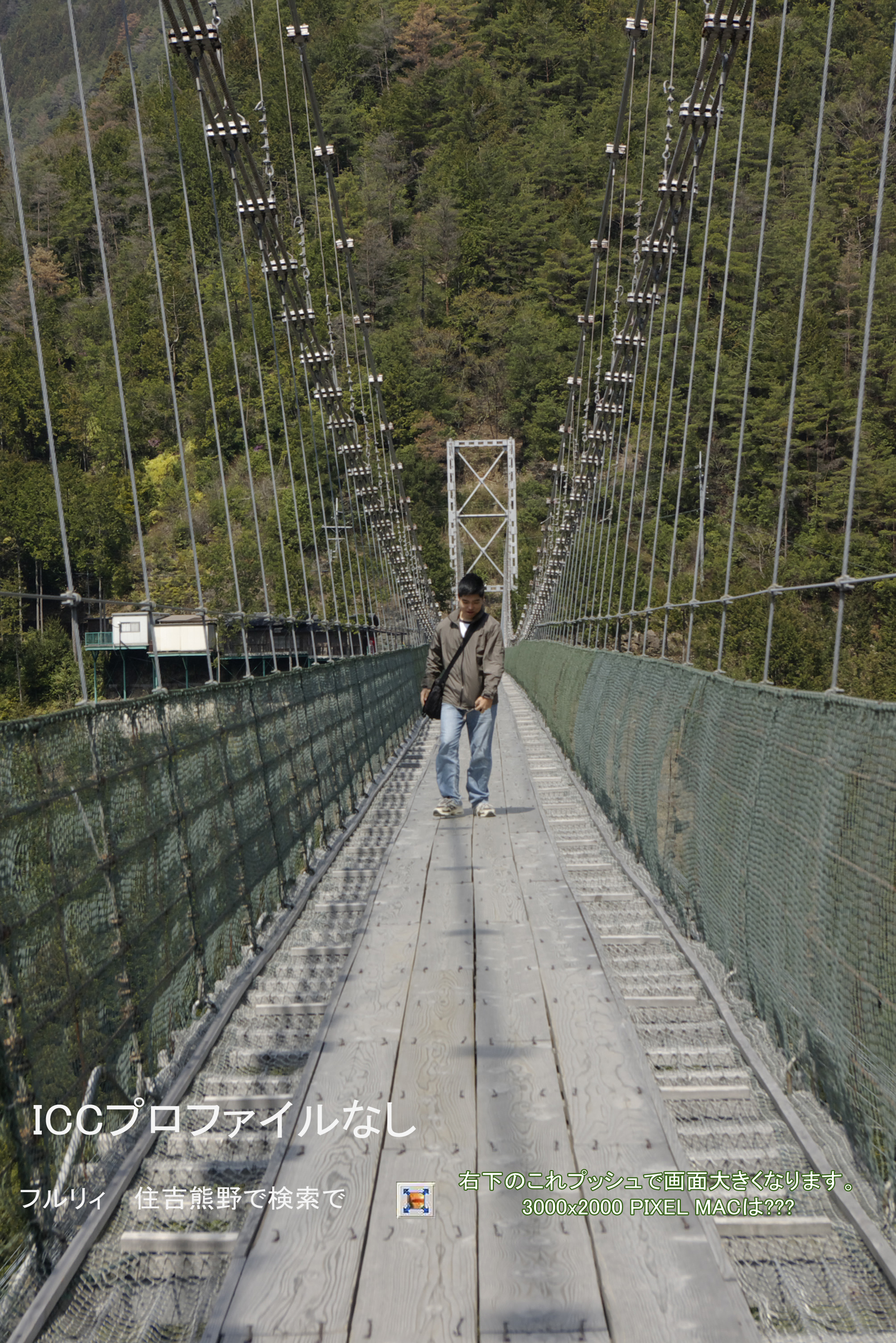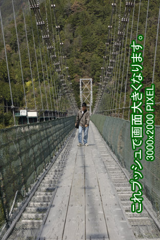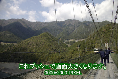 2,008年3月28日十津川 谷瀬の吊り橋 写真撮影とRAW加工データー デザイン街道 フルリィ シヨッピングカート 写真プリント販売 始めました。 |